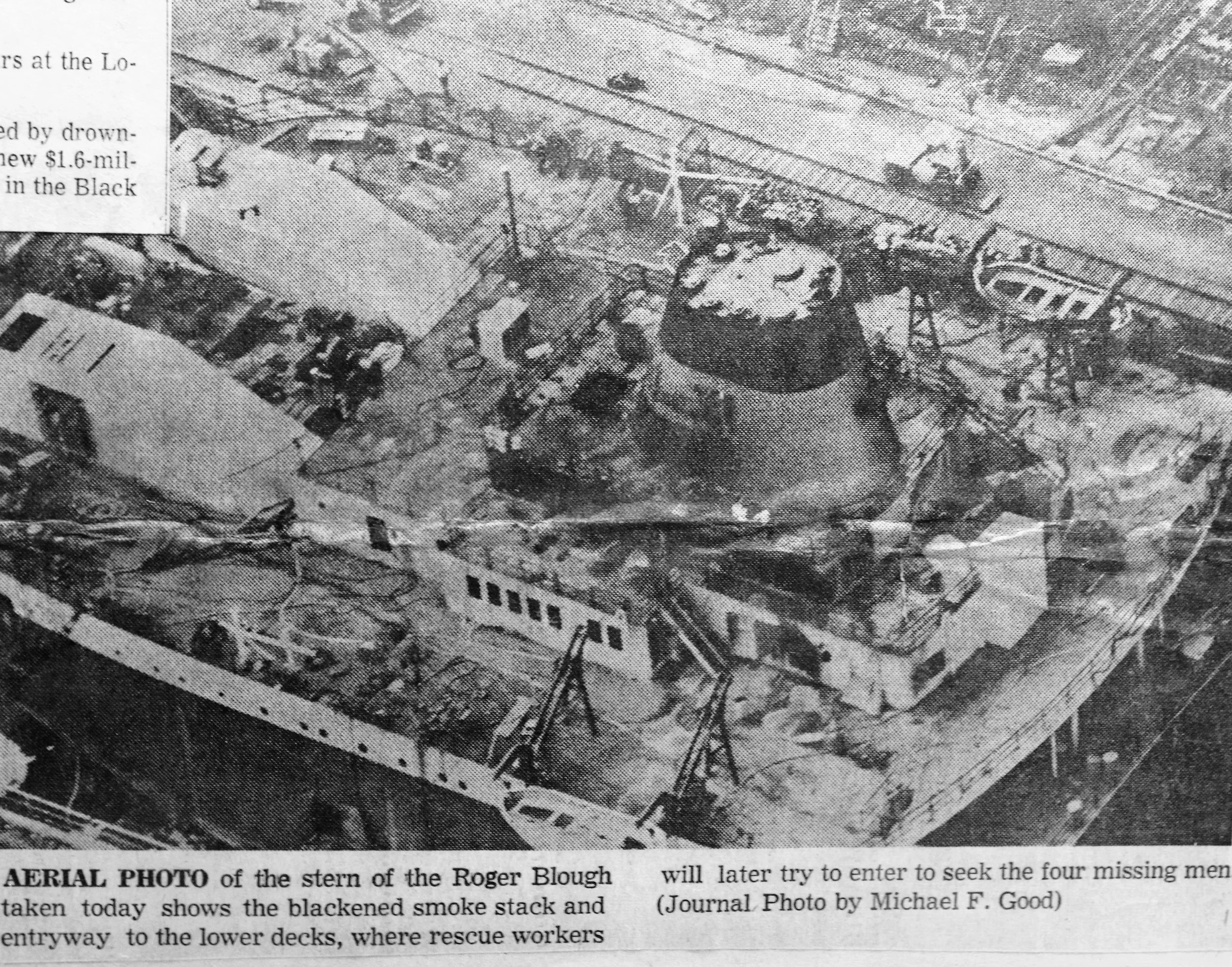 The Roger Blough was an ore carrier docked in the Lorain Shipyards, it caught fire near the engine room, killing four workers. The Lorain Fire Department battled the blaze for days, and suffered multiple injuries, not to mention serious long-term health effects.